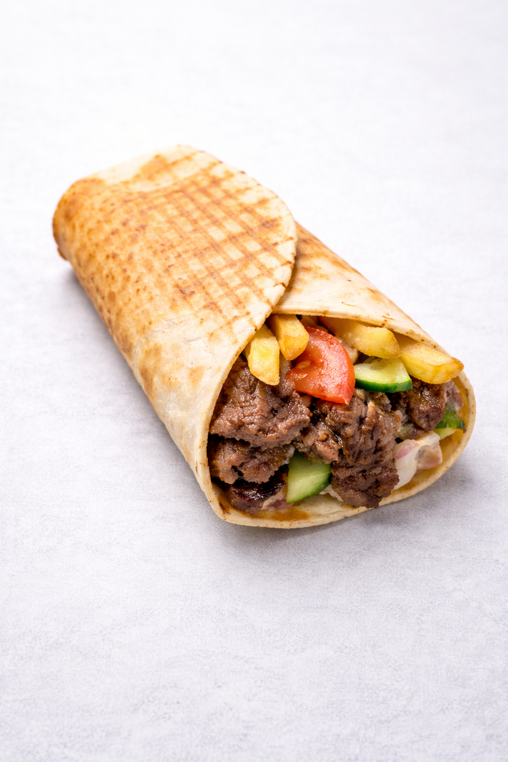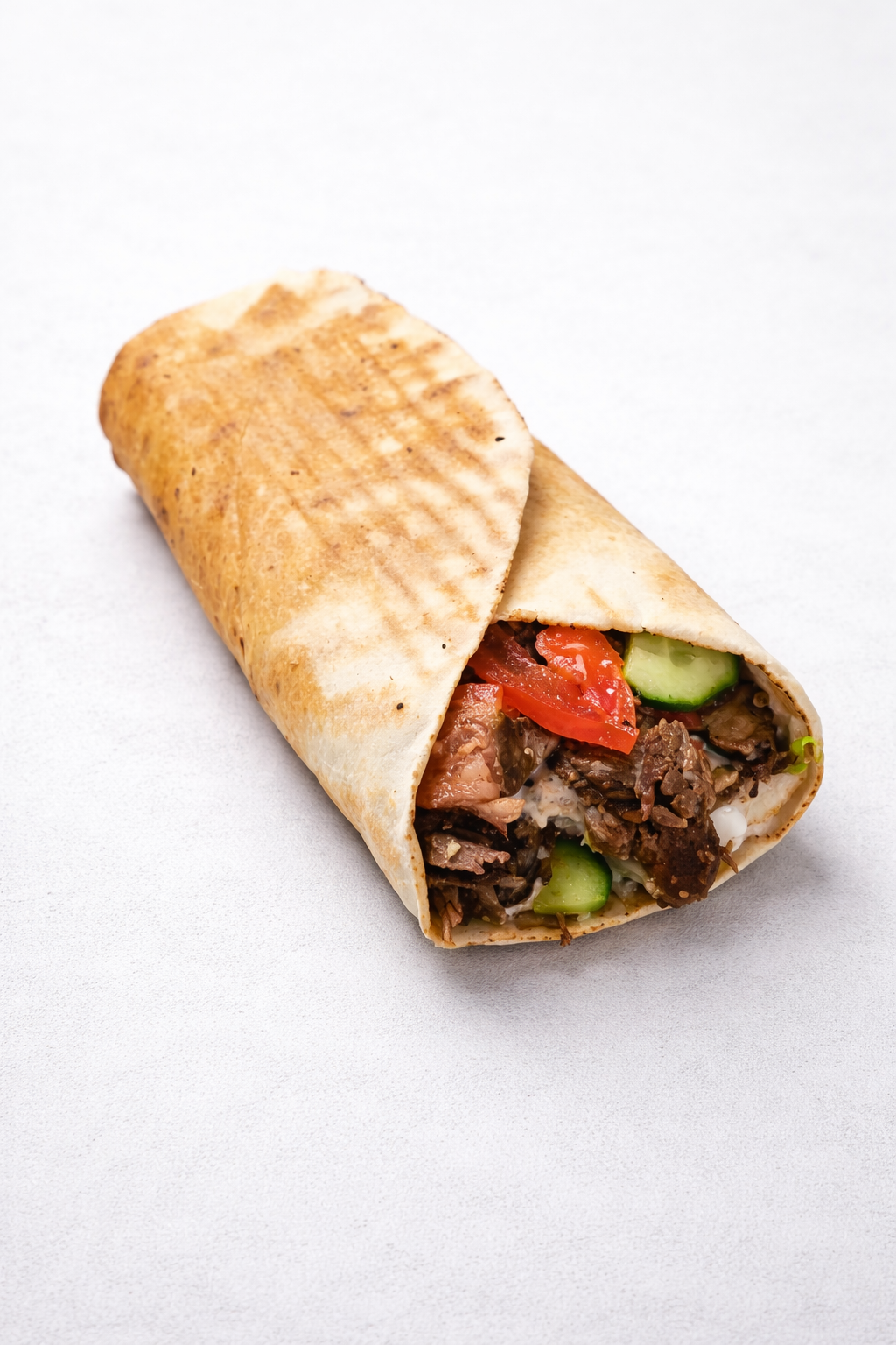 Cienka, elastyczna tortilla z dobrze przyprawionym mięsem (kurczak, wołowo-baranie lub mieszane), świeżymi warzywami i do trzech sosów do wyboru. Tortilla dobrze trzyma całość, nie dominując nad składnikami.